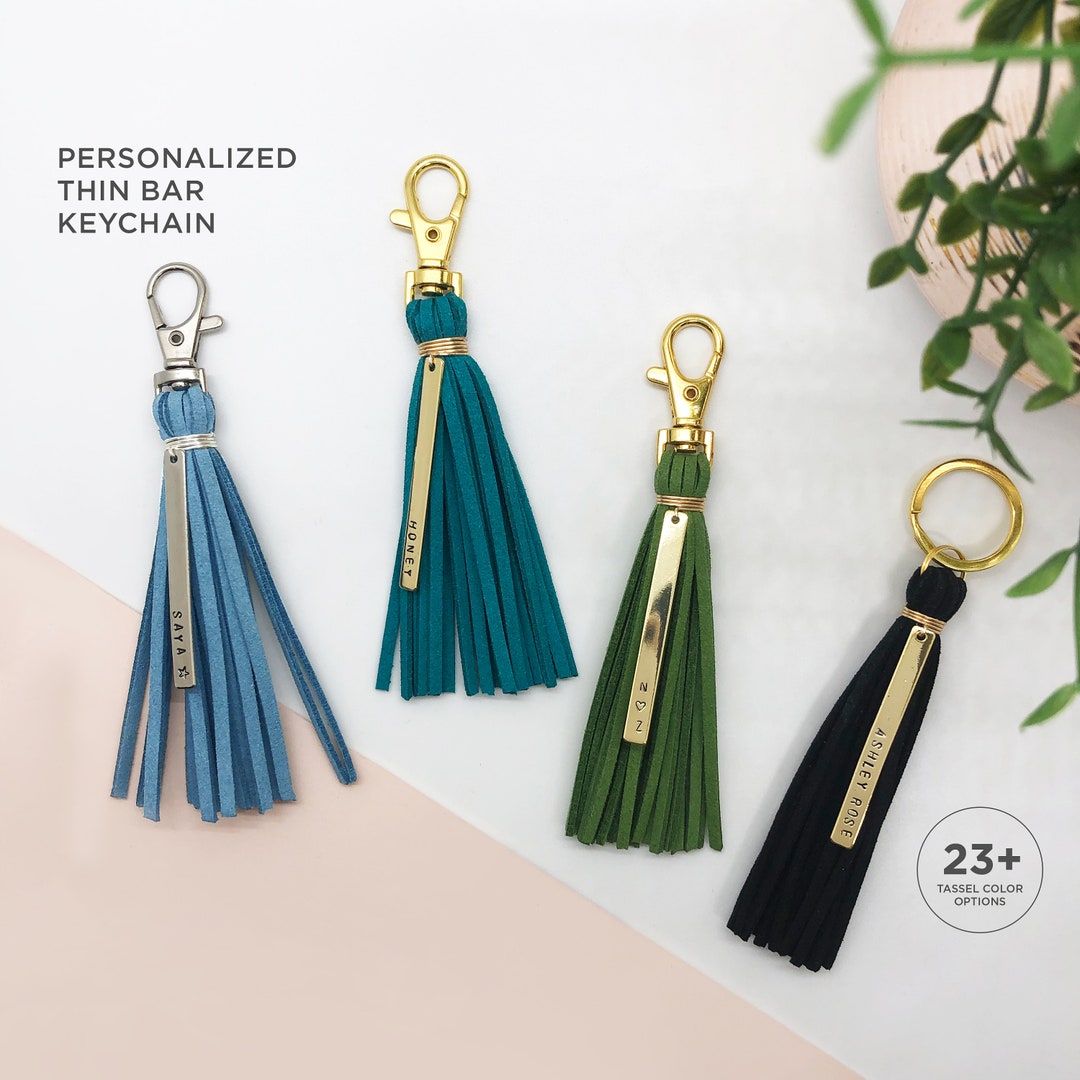 Buy Personalized Thin Bar Keychain Suede Tassel 23 Color Online In India Etsy